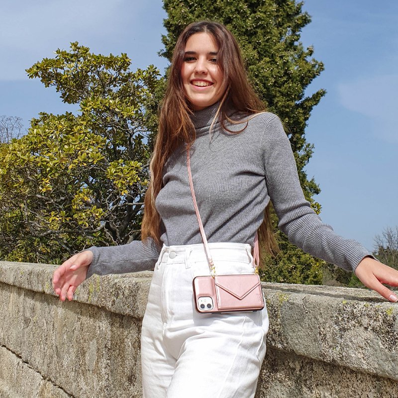 La Carcasa con colgante COOL Wallet cuenta con una carcasa de piel sintética, una correa colgante de piel sintética también con cierres metálicos en color dorado. Además, dispone de un bolsillo para guardar tarjetas, monedas o billetes. Sin duda, un accesorio todo en uno.